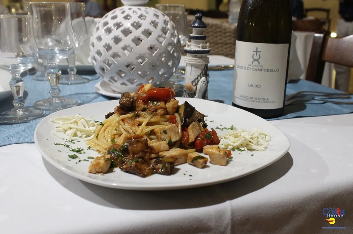 La buona cucina “lampedusana” Esplora il territorio e Conosci i suoi prodotti Respira l’essenza di sapori e tradizioni Uscendo dal centro abitato, a circa 900 mt, in direzione Cala Pisana si giunge al Costa House Ristorante un piccolo borgo immerso in un’oasi di verde. Un angolo della natura dove si rimane coccolati dall’ accogliente atmosfera dei viali di ingresso che vi portano nel terrazzo dove gustare la vostra cena. Aperto nel 2005 è un palcoscenico della natura Lampedusana la stessa bellezza che si ritrova nei piatti la cui creatività è nelle mani di Chef Rosaria Di Maggio. Non dimentichiamo che “il fascino della vita passa attraverso il cibo”